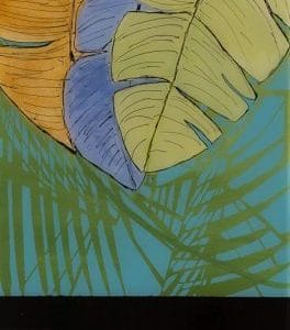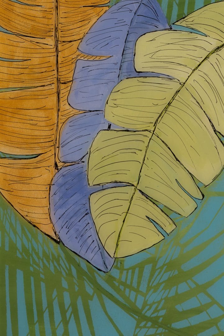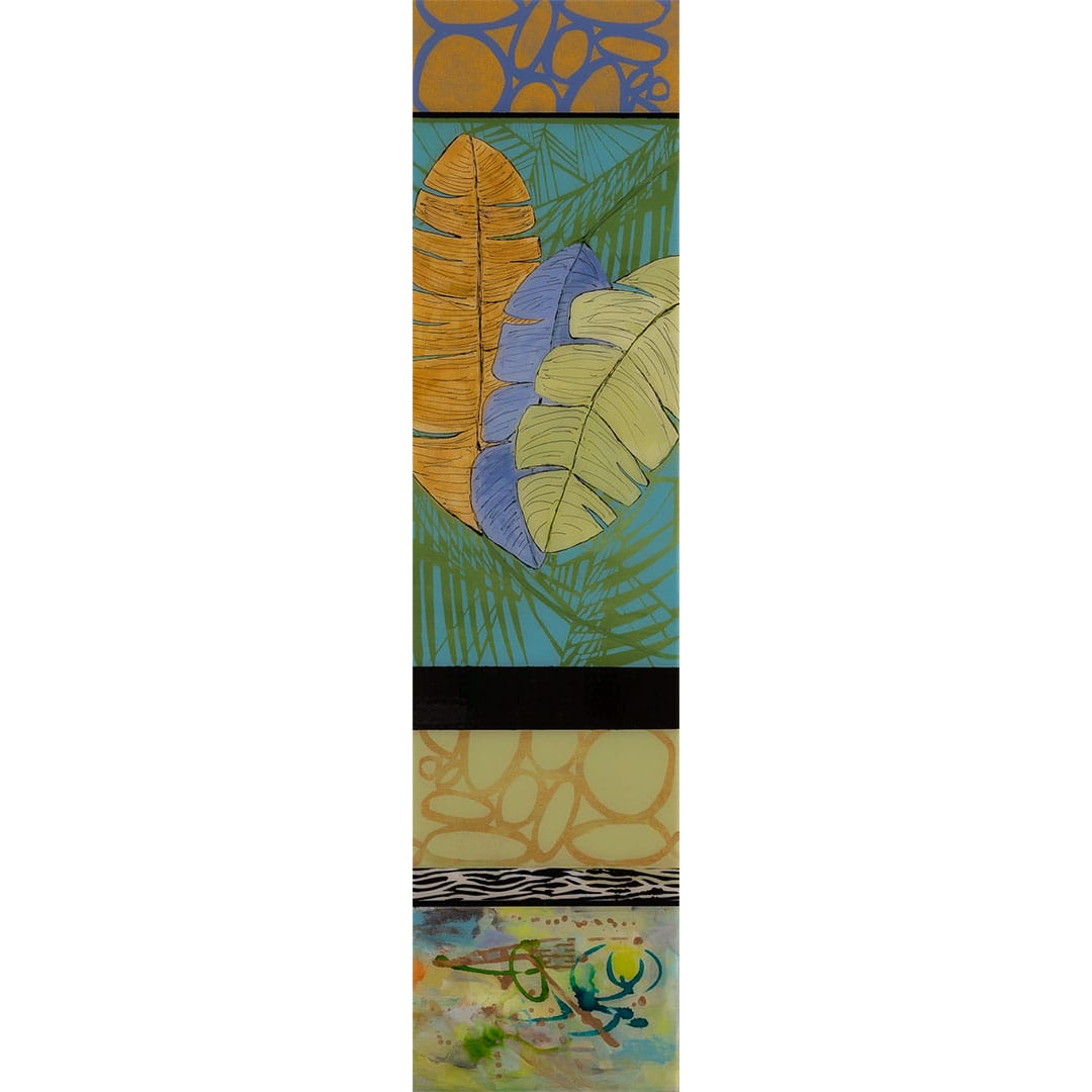 “Hiding Behind the Palms” – a captivating piece of art that will transport you to a serene oasis of abstract beauty. This exquisite artwork, measuring 48″x12″ and created with a mix of acrylic and other media, is truly a sight to behold.